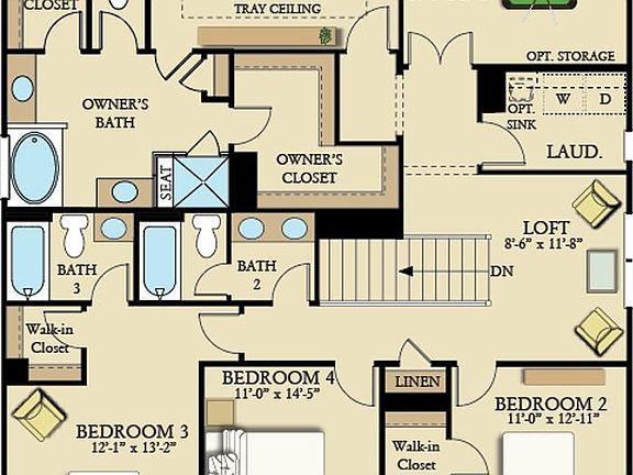 This new two-story home offers space for the everyone to enjoy. The main level has an open design among the living and dining areas, with access to a screened porch. A study and bedroom for guests frame the space. Upstairs are a game room, loft and three more bedrooms, including the owner’s suite, while an optional finished lower level includes another bedroom and an outdoor patio. Estimated to complete March 2023 **Photos from previous model home, options and color schemes may be different in the actual home**