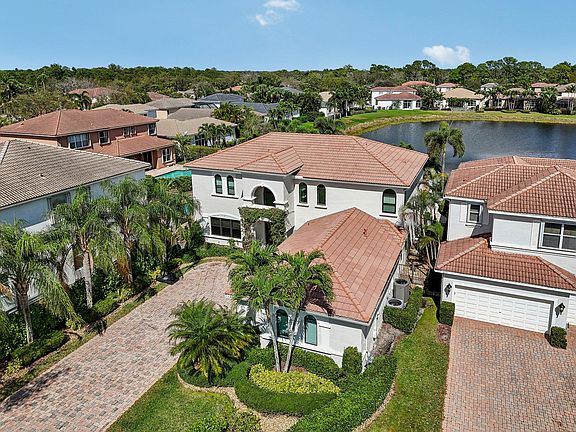 Live the Florida lifestyle in this beautifully updated 5-bedroom + office, 4-bath pool home on a private cul-de-sac in the gated community of Mirabella! This spacious CBS home features a 3-car garage, impact windows and doors, and one of the largest driveways in the community.The lakefront backyard is made for entertaining with a heated saltwater pool and spa, expansive marble deck, extended covered lanai with wood-paneled ceiling, summer kitchen with gas grill, bar seating, and retractable awnings -- perfect for gatherings year-round!Inside, enjoy a chef's kitchen with a 6-burner gas cooktop, double ovens, beverage fridge, and breakfast bar, all opening seamlessly to the outdoor space through sliding impact glass doors. A grand staircase leads to the upstairs primary suite with stunning lake views, two custom walk-in closets, and a spa-like bath. Additional features include a first-floor guest suite, dedicated office with built-ins, formal dining, and custom closets throughout. Recent upgrades include: smart thermostats, GE high-efficiency washer/dryer, 2023 water heater with recirculating system, Wi-Fi-enabled garage doors with cameras, portable generator, and EV-ready garage. Mirabella offers resort-style amenities without the country club fees! Enjoy a clubhouse, fitness center, 4 tennis courts, and pool  all just minutes from A-rated schools, golf, dining, and shopping in Palm Beach Gardens!