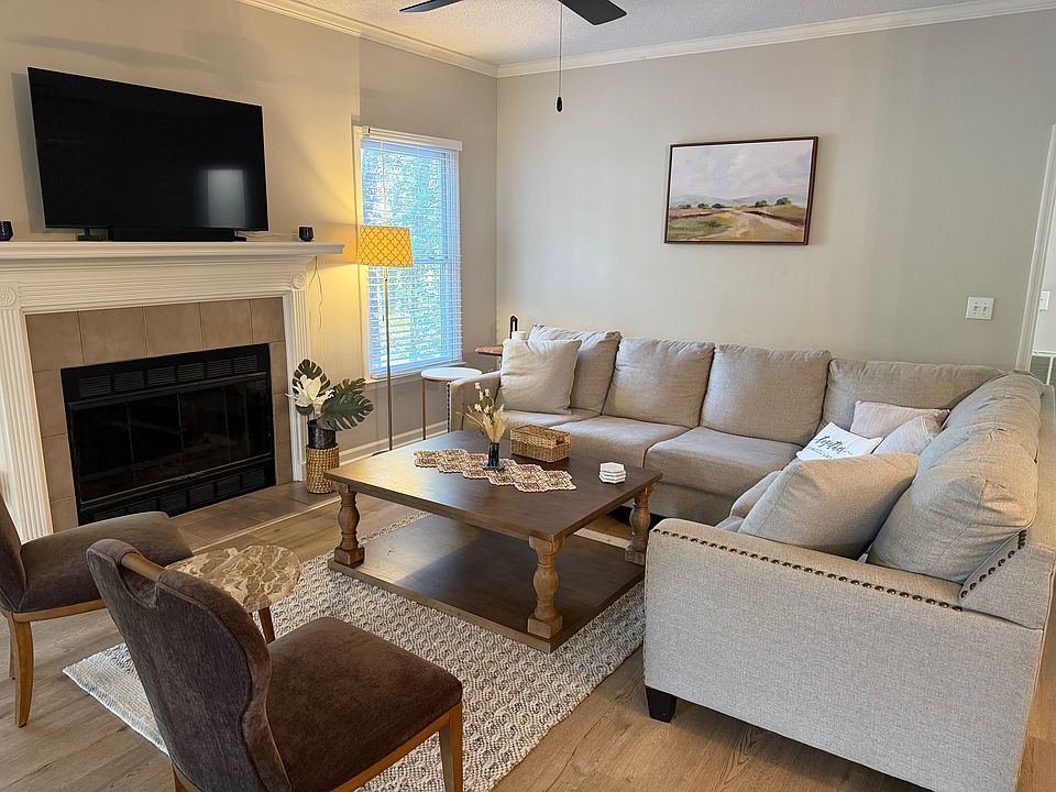 This is a short-term rental for those that need temporary housing that feels like home! Looking to rent for 1-3 months at a time. This lovely newly executive rental home is furnished and features fresh gray paint in kitchen, living room, dining room, hallway and Main Bedroom Suite. Flooring is brand new LVP. No carpet so it stays very clean. You will love the serenity and privacy of this wooded lot with a pond view. It is just across the street from the recently updated park nearby including the beautiful Gibson Park with picnic spots, walking trails, bridges, and ponds. Old Mill Brew Pub and concerts at the amphitheater are also walking distance and just minutes away. Great residential areas surround this property including high-end homes. What a cool location for peaceful evenings on your back porch or walk to the park/shows/shopping! Small dog considered with pet fee and monthly rent fee. Washer, dryer, fridge all included. Internet already set up and all you have to do is pay for electricity and any extra TV apps as needed. May be available for a short term rental depending on other bookings. Case by case basis. Must have credit score above 675. * Prices and availability subject to change without notice. * Square footage definitions vary. Displayed square footage is approximate. First month's rent and security deposit due at signing. Renter is responsible for utlitiies such as gas and electricity. No smoking and no pets. Can do short term rental as well in which case water is included.