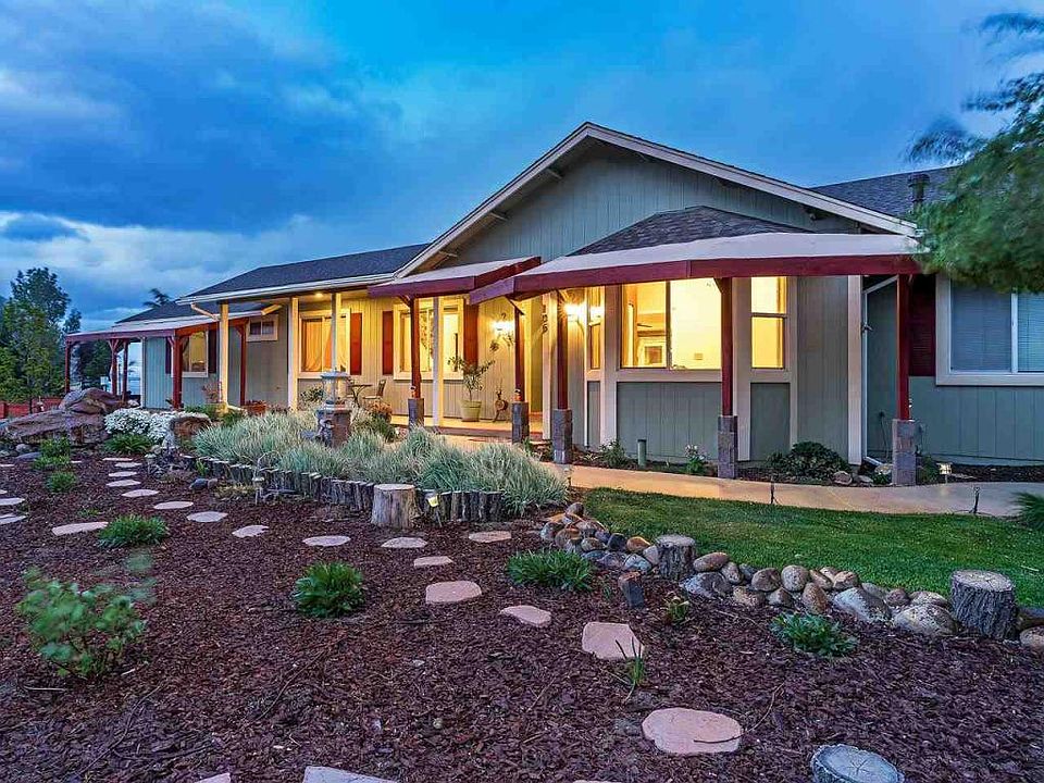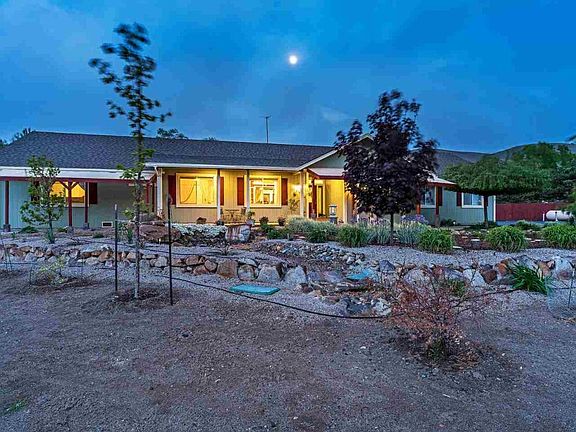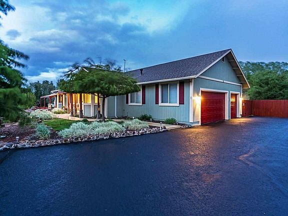 Pride of ownership throughout! Beautifully landscaped, single-level home is set on 1 acre in Pleasant Valley and is surrounded by towering trees and borders a creek. Ample space for RV parking with a circular driveway for easy access. Open floorplan features vaulted ceilings with a great room design (perfect for entertaining) and lots of natural light. Spacious kitchen includes stainless steel appliances (refrigerator included), center prep island, breakfast bar and breakfast nook for casual dining.