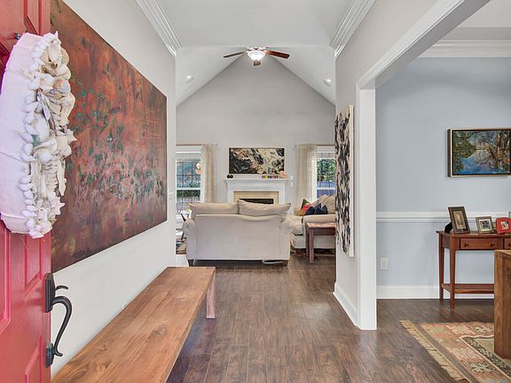 This beautiful southern home offers the best in Low Country living. Rare find with Two Car attached garage PLUS two car detached garage with unfinished room over! One Story plan with Bonus/4th Bedroom over garage. High, smooth ceilings, open floor plan, wide baseboards, wood laminate flooring through all living areas & main floor bedrooms. Bonus room, baths, laundry tile flooring. The only carpeting in the house is on the staircase. Floor plan includes foyer, formal dining, large great room with vaulted ceiling, well-appointed kitchen, 3 bedrooms & laundry on the 1st floor. Bonus room/4th bedroom has a closet as well. Large front porch, large, covered patio, plus open extended patio space overlooking large fenced back yard. Extended Driveway leads to 2 garagesTwo Car Attached Garage (21 x 20) plus 2 Car Detached Garage (24 x 24)! No HOA! Kitchen boasts granite counters, white raised panel cabinets finished with crown molding and roll out shelves in most base cabinets, tall pantry cabinet with roll out shelving, stainless appliances and the refrigerator conveys to the buyers! Breakfast room is filled with charm and sunshine! Enjoy large windows with great views of your private back yard. King sized owner suite with tray ceiling and custom ensuite is swoon worthy! Enjoy large walk-in shower with tile surround, bench seat and multiple spray heads. Extended raised vanity with dual sinks has granite counter and 11 storage drawers! Large walk-in closet has custom organizer. Nothing was missed in this amazing space. Both secondary bedrooms are nicely sized with good closets. Hall bath and laundry room have ceramic tile flooring. Laundry room also has wall mounted cabinets for good organization. All window treatments convey. Washer/Dryer set and kitchen Refrigerator convey to buyers. Tray ceilings in formal dining and owner's bedrooms. Vaulted ceiling in great room. Wide baseboards, cased windows & doors. Front Porch - 31' x 7' Covered Patio - 18' x 4' Open Patio - 30' x 11' Detached Garage/Workshop features two separate bay door,s separate electric panel, workbench conveys, and there is large unfinished room above that has been insulated and is ready for the new buyer to finish. It could make a great game room, art studio, home gym, office, and more - whatever compliments your lifestyle. This mature lot has amazing shrubbery, shade trees, blooming perennials and raised herb beds. The sellers are leaving a compost bin for your use as well. Located within a bike or golf cart ride to the historic shopping district this is a one-of-a-kind location. Simply too much to list! Houses like this rarely become available - don't miss it!