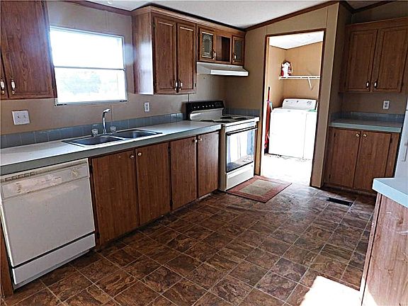 This nicely sized manufactured home sits on 2.8 acres of a corner lot, with a large yard, storage building and shade trees. Behind the house is a quality fenced area for small livestock or horses if desired. Plenty of room for a large garden, fruit trees, workshop, barn or even a kid's dream play area. Lots of potential! The home has a metal roof and features an open concept floorplan with a woodburning fireplace as its focal point. The split primary bedroom has a walk-in closet and a separate shower & tub area ensuite. The second bathroom between the two remaining bedrooms has a tub & shower combo. While you are only minutes away from shopping, restaurants and entertainment, you will be living the country life! This house has had some renovations but needs some additional work. With a little TLC, this home can be a great place in the country for the kids to play or a quiet retreat. Bonus is although it is out in the country it is accessible on paved roads the entire route. Book your showing today.