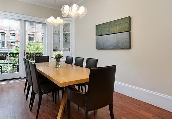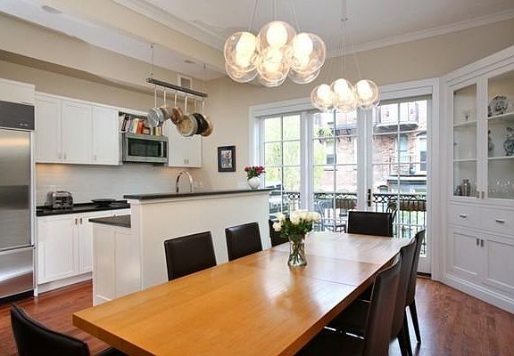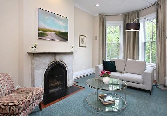 Beautiful bow-front townhouse, located in the heart of the South End on one of the most highly sought after tree lined side streets. Private entrance to 4 bedroom triplex with open kitchen, dining and living room plan with a convenient half-bath. Renovated kitchen with custom cabinetry, Sub-Zero and Thermador gas cooking. Adjacent dining area looking out a wall of glass to a private balcony with natural gas grill (hard-lined). Inviting living room area with original marble mantel surrounding a natural wood-burning fireplace. Second floor master bedroom, with large walk-in closet, private den or nursery and en-suite bath with glass enclosed shower. Third floor bedroom level with two bedrooms and additional full bath. Accordion style wall provides great floor plan flexibility. Adjacent stairs lead to a private roof-deck with 360 degree views of the City. Some dogs and cats ok with permission. Heat, hot water and gas