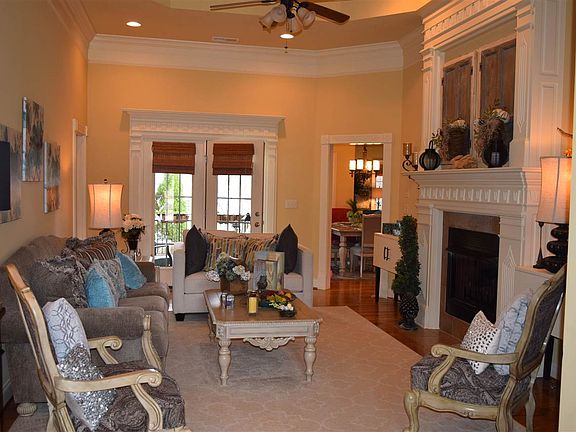 Almost a hidden secret subdivision, gated, gorgeous fountains, sidewalks, street lights, curbing, beautiful trees. This home is all on 1 level, with 3 bedrooms, 3 baths, large kitchen with keeping room with custom built-ins, living room with fireplace and extensive molding thru-out, covered porch on back, and beautiful patio, media with custom built-ins and surround sound. Master bedroom is large with sitting area, master bath with jetted tub and shower and 2 closets. There is a study/office space with coffered ceiling and door out to covered porch. 2 Car garage is oversized and has protective flooring. Home shows like a model home!!!