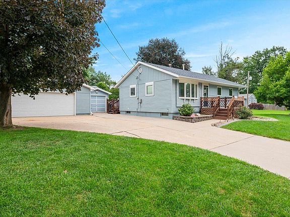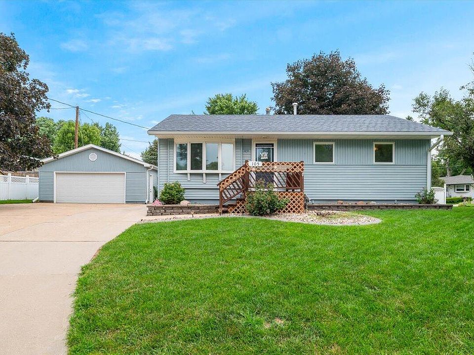 Charming ranch-style home on a spacious corner lot with vinyl siding and newer windows featuring built-in blinds. The beautiful kitchen offers an abundance of cabinets, built-ins, and includes all appliances. Recently remodeled modern bathroom. Extra-large living room with bay window. The full basement includes a non-conforming bedroom and is just waiting to be finished into your dream space -- movie room, gym, you name it!, Tons of storage. Washer and dryer stay with the home. Outside, enjoy an extra-large deck overlooking a peaceful pond, as well as a large front deck. Property includes a 2-car garage, a large shed, and ample off-street parking. Sprinkler system installed. This well-maintained home is move-in ready with room to grow!