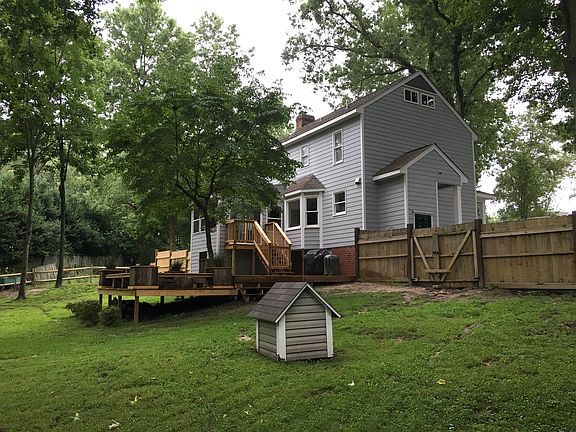 This house is practically new! Everything has been remodeled & updated...from the beautiful kitchen with quartz counters & stainless steel appliances to the luxurious master bath with a large tiled shower! Bamboo floors downstairs, modern light & plumbing fixtures, huge multi-level deck, bright sunroom, large 3rd floor bonus room, huge master bedroom walk-in closet, big fenced back yard. Replaced HVAC & water heater. Convenient location...near shopping center right off 64 near 540! Showings begin Friday!