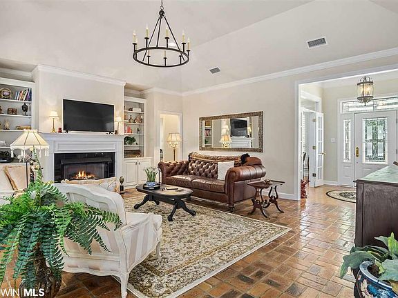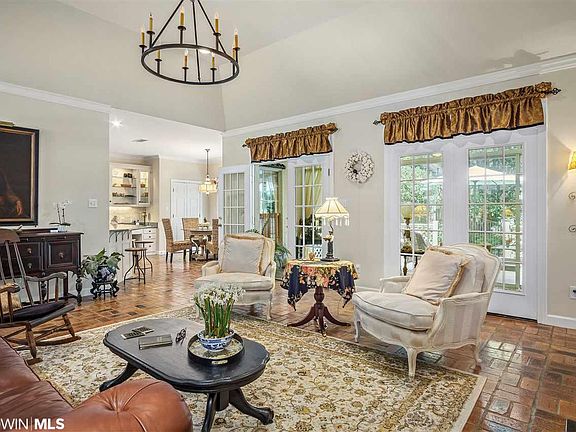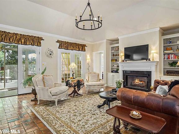 This elegantly updated home shows pride of ownership throughout. From the minute you walk through the front door, you know immediately that the owners have taken great care of this property. In addition to 4 spacious bedrooms, the home features a dedicated office space with french door and transom that matches the entry into the generous formal dining room. The living room provides a vaulted ceiling, built-in cabinets, gas log fireplace, and a double set of french doors that open up to an attractive sunroom. The interior color palette is a neutral tone with white glossy trim. Both the inside and the outside of the home have been recently painted. The sunroom is tiled with a triple stacked sliding glass door that opens up to a 19x14 deck, complete with a permanent gas line for your grill. You'll feel a sense of privacy with how the home is situated in the cul-de-sac and with the numerous mature trees and well-kept landscape. The kitchen is spacious and appealing providing you with ample cabinet space and plenty of granite surface area, perfect for entertaining. You'll find all stainless steel appliances that include a Bosch gas cooktop with an in-wall convectional oven and microwave, a Fisher Paykel double drawer dishwasher, and refrigerator with ice and water available in the door. The breakfast nook allows plenty of room for informal seating and overlooks the backyard. The layout of the home has a split floor plan. The master bedroom is also spacious, offering 2 walk-in closets, large master bathroom with a jetted tub, separate shower, and private water closet. Two of the three other bedrooms share a jack-n-jill bath and just about everything has been updated. This is one of those properties where there isn't enough room to write about all of the wonderful attributes of the property. If you are looking for a beautiful home in one of the most desirable neighborhoods in Fairhope, put this home on the top of your list to see in person.