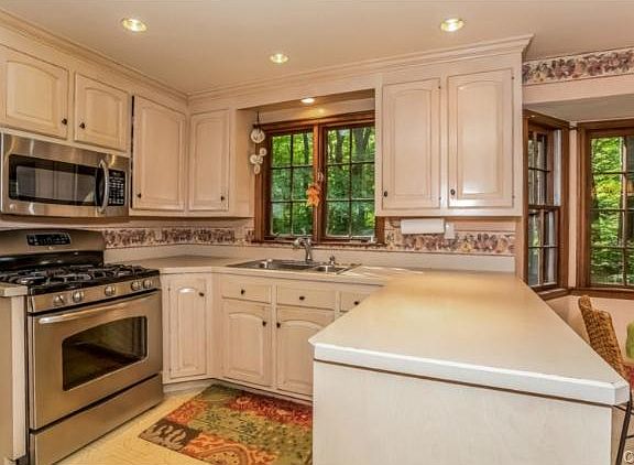 MOTIVATED SELLER! Classic 4 bedroom colonial with great layout. Check out the floor plans to see the big bedrooms and walk-in closets upstairs. Notice that the spacious main level has a dining room, living room, family room AND sunroom. Plus, the EIK has new ss appliances. The sun-filled walkout basement is above ground, was redone in spring 2014, and has a huge storage room and wet bar. Great features include hw floors throughout, elegant stone hearth, new GAS furnace & hot water heater. From the mahogany deck enjoy the gentle sound of the brook and the private canopy of 1.5 wooded acres. All this on a quiet, block-party street close to shopping, highway and train... plus award winning schools. Inspection completed - house move-in ready!