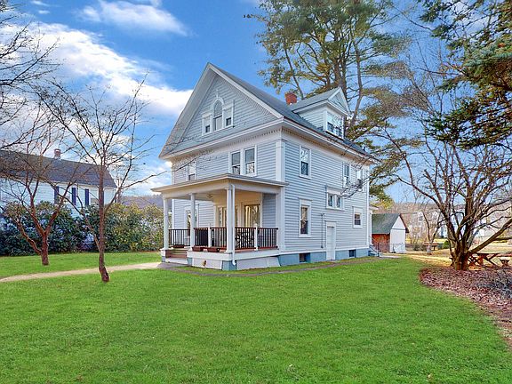 NEWLY RENOVATED - STATELY 3 STORY COLONIAL HOME ON FULL BASEMENT W/ 3RD FLOOR MASTER BEDROOM SUITE/IN-LAW SUITE & DETACHED 2-GARAGE ON FENCHED-IN .23 ACRE DOUBLE LOT IN MATAMORAS, PA - NO HOA - PERFECT FOR AIRBNB Just a stones throw away to the beautiful Delaware River, this incredible 4 BR 2.5 Bath home features 9ft ceilings, large floor-to-ceiling windows bringing in plenty of natural light, energy efficient split unit A/C & heating systems on each floor as well as new boiler for its natural gas hot water radiators, and luxury vinyl, ceramic tile, & bamboo hardwood flooring throughout. This home boasts a covered Trex Deck front porch that leads into a big open foyer beautiful original handcrafted chestnut woodwork, an ultra modern kitchen w/ new stainless steel appliances, natural gas cooking, & granite countertops; a large living & formal dining room; 4 spacious BRs including a big open 3rd floor walkup living area that can be used as a Master Bedroom with its own private ensuite bathroom or as In-Law/Mother-Daughter suite that has access to water & waste lines to easily install a kitchen. The home has an enclosed back porch laundry room with washer & dryer hook up and 3 new bathrooms on each floor including a main floor half bath and 2 Full Baths on its 2nd & 3rd Floors.DV SCHOOL DISTRICT & JUST MINUTES TO I-84 & BRIDGES FOR QUICK COMMUTE TO NY & NJ