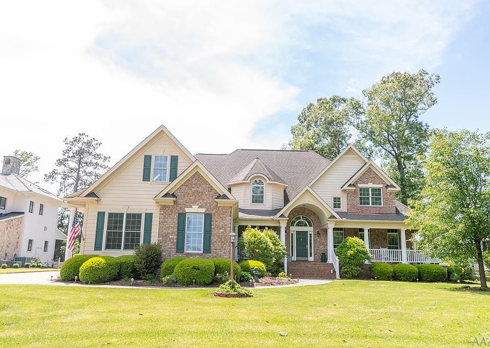 Stunning waterfront cul de sac home in Albemarle Plantation, NE North Carolina's Premier Gated Community. The gourmet kitchen is perfect for entertaining and the sunroom and deck are the best places to enjoy beautiful sunsets and tranquil water views. The spacious master suite with walk-in closets, and excellent master bath also has an en-suite office. The large deck leads to a pier and boat lift. The generous rooms can accommodate a large family or several guests. Don't miss this beautiful and gracious home!