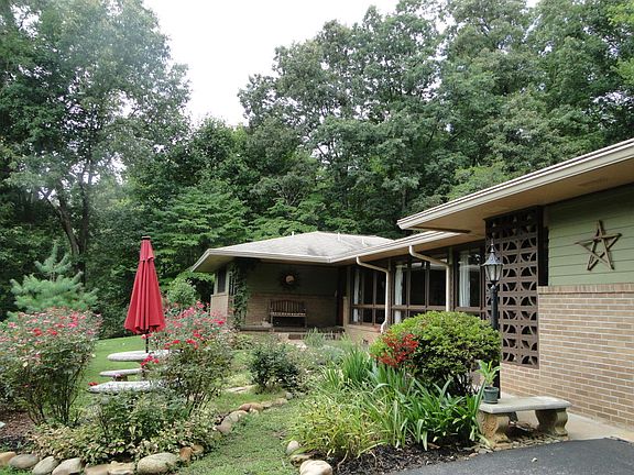 Mid-century beauty is updated, move-in ready and offers stunning features from the era! This 3-bedroom, 2-bath ranch has a Frank Lloyd Wright feel, but without the price. Architecture by Lester Cohen and original blueprints were found by current owners! Wonderful, spacious, flowing floor plan is perfect for entertaining large numbers of guests. Lots of light offered by the sprawling, wood, Anderson windows that span the front of the house to include the great room, dining room and kitchen. The screened-in porch and covered porch area in back provide a retreat-like space to relax and watch the deer roam by. Enjoy the convenient location AND the privacy offered by the mature trees that surround the .81 acre property.
