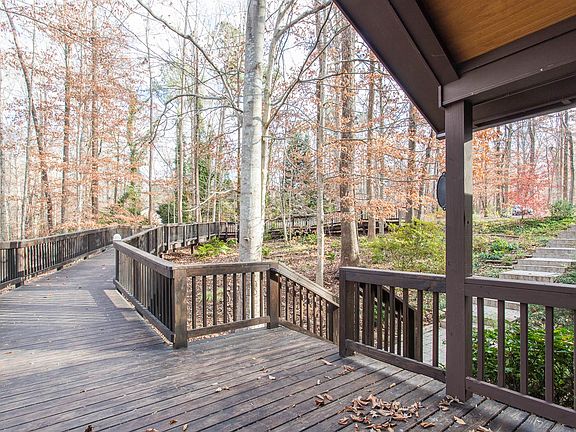 Unique home on 1.4 acres not far from downtown Cary. Gaze out from your 2-story wall of windows in the family room onto a beautiful, private wooded lot or relax on the expansive deck. Plants & landscaping galore perfect for the gardener! 3 bedrooms with two additional flex rooms in the basement & more living space. Granite countertops in kitchen. Custom walk-way with LED lights. Irrigation system. Whole house generator. Roof 2012. No city taxes or HOA. Explore the possibilities & make this home your own!