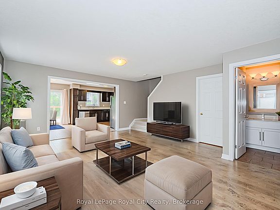 Quiet and well-maintained townhouse complex in Guelphs sought-after south end! This spacious 3 bedroom, 2.5 bath end-unit townhome offers bright, open-concept living and backs onto peaceful green space for added privacy. The meticulous interior features stainless steel appliances, quartz countertops in both the kitchen and bathrooms, and convenient second-floor laundry. The primary suite includes a walk-in closet and private ensuite bath. Enjoy parking for two vehicles (including one in the garage). An unbeatable location close to the University of Guelph, shopping, dining, parks, and all south-end amenities, with easy access to HWY 401 for commuters. Looking for A+ tenants who will appreciate and care for this beautiful home.