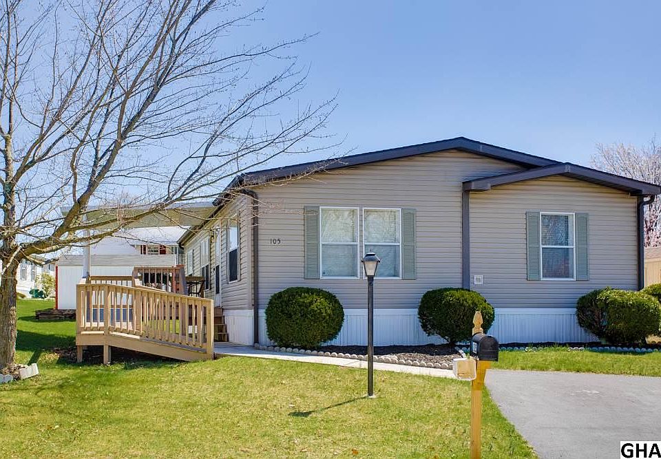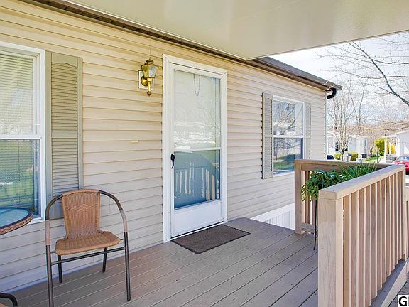 Charming, move-in ready 55+ community home. Light & bright with the option of having a den/office/family room OR a formal dining room in addition to a large, beautifully updated eat-in kitchen with gas stove. Master bedroom has master bath & walk-in closet. Second bath conveniently located to second bedroom & main living area. Spacious laundry area/mud room off kitchen. Private covered deck overlooks backyard, wheel-chair access ramp leads to covered front porch. Two-car paved driveway &shed complete the picture!