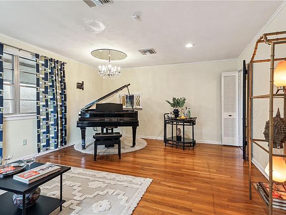 Old Jefferson Mid Mod steps to the levee and just 3 blocks to Ochsner Main campus! Incredible value at $158/sqft for 1885sqft of living area, 3 bedrooms, 1.5 baths, a new roof from October 2021, kitchen remodel in 2016, spacious living areas, covered parking, and tons of storage! Front living room features original hardwood floors and chandelier, plus the original “pass through” window to the kitchen. Full bathroom boasts retro tile and built-ins, plus separate shower and tub. Kitchen opens to an expansive dining area and cozy den complete with brick wood burning fireplace and hidden walk-in closets behind the bookshelves! Enjoy the convenience of the long driveway with carport and side entrance into the kitchen for rainy days! Enclosed garage with window unit connects directly to the main house and offers an additional 350 sqft for laundry, storage, workshop, crafting etc. Backyard offers a covered patio, shady trees, and privacy fence. Located in the preferred X flood zone. Additional improvements include a new hot water heater and new front windows in 2022. Original wood floors in front bedrooms, and under the carpet in rear bedroom. Live here to enjoy lower property taxes in Jefferson Parish with just a 6 minute drive to Audubon Park, or 2 minute drive to Oak Street!