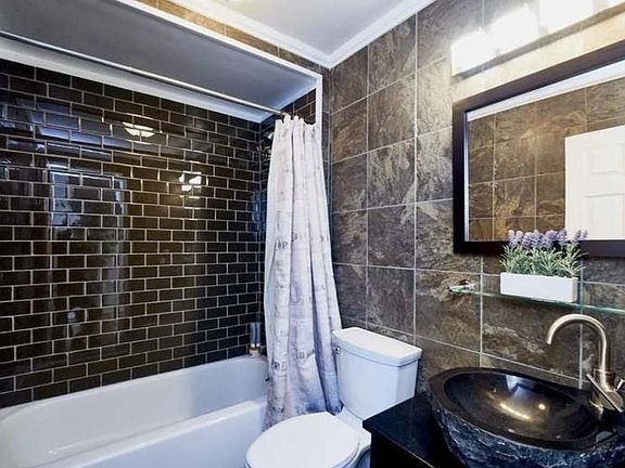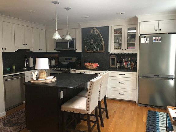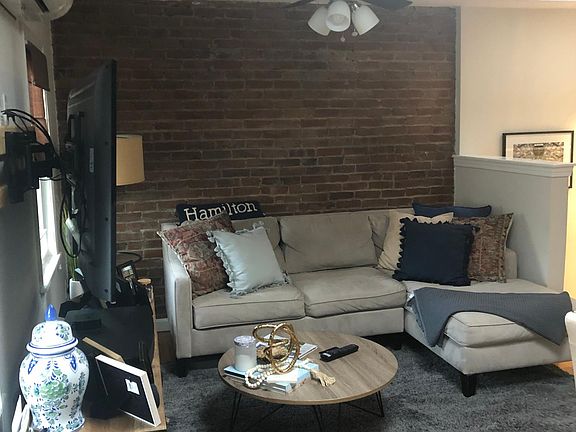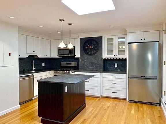 Sun drenched 1BR 1BA top floor unit with PRIVATE DECK available for Sept 1 move in. Beautiful hardwood flooring throughout, exposed brick, central air, in unit laundry, NEST thermostat and extra storage space in the basement. Newly remodeled kitchen with custom white cabinets, granite counters, Samsung SS appliances ,dishwasher, gas cooking and garbage disposal. Center island/breakfast bar with skylights to add character to the sunny open living/kitchen area. Enjoy entertaining from your very own private deck just off the kitchen. Beautiful french doors lead to the spacious bedroom with a large walk in closet.