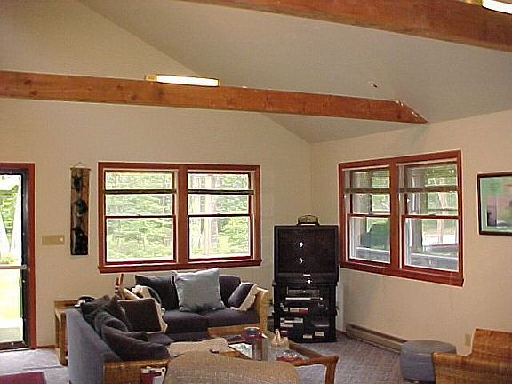 PRIVATE CUL-DE-SAC SETTING On over 1 acre of privacy, this custom built contemporary ranch offers living room with vaulted ceiling and 9 clerestory windows for solar heating, oversized custom kitchen, 2 bedrooms, 2 baths, laundry room, full basement and big deck.