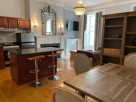 Fully furnished large and sunny parlor level studio in perfect location on Beacon Street right across from the Charle River footpath access and steps from the Public Garden. Renovated kitchen with stainless steal appliances, granite countertops, dishwasher, microwave and a kitchen island. Hardwood floors throughout and renovated marble bathroom. Common laundry in the building. Heat and hot water included. The apartment comes furnished with a brand new queen size bed, dining room table that sits six people, couch, TV, two bar stool on the island and large bookcase. In addition there is an extra storage space for suitcases, etc. Easiest move ever, just bring your suitcase. Single occupancy only. Available 7/1. No undergraduates please and no pets. Potential tenant credit score has to be 700 or higher. 12 months