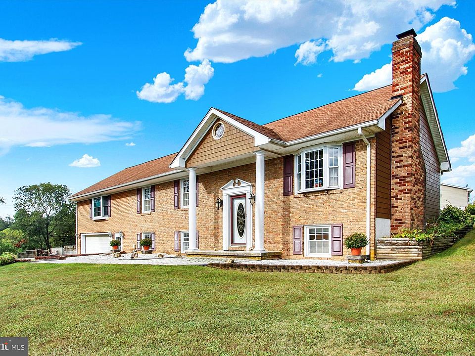 Welcome to this spacious three-bedroom split-foyer home, perfectly situated on over an acre in a quiet cul-de-sac community. Step inside to find solid hardwood floors flowing throughout and a thoughtful layout designed for both comfort and entertaining. The upper level offers a formal dining area and a kitchen with breakfast bar, ideal for everyday living or hosting gatherings. Retreat to the enormous primary suite, complete with vaulted ceilings, a private loft, full bath, and private balcony—a true owner’s sanctuary. Two additional bedrooms (one featuring its own private full bath) and an extra office provide flexible space for families and work or hobbies. The finished basement is a bonus haven, boasting a family room and game area that open endless possibilities for fun and relaxation. Outdoors, enjoy a large paver patio overlooking your expansive yard, perfect for entertaining or simply soaking in the peaceful setting. Additional highlights include a two-car attached garage with mudroom, geothermal heating and cooling, a generator and shed. Schedule your showing now to see this gorgeous property for yourself. HOME WARRANTY INCLUDED!