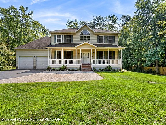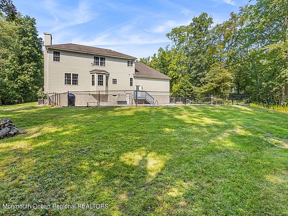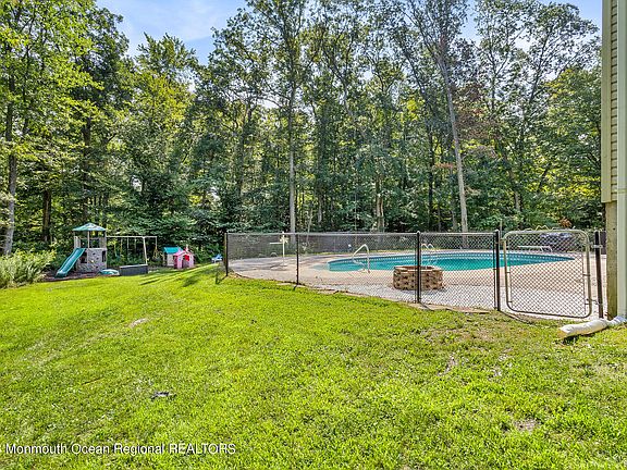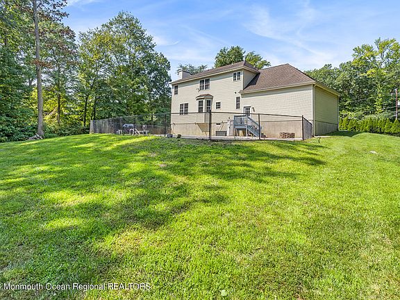 Immaculate 4 bed, 2.5 bath home with a 2-car garage and a full unfinished basement with 2 Zone HVAC system - built in 2006. This home is sitting on a private wooded lot with an in-ground pool. Bright and airy two-story foyer entry, hardwood floors and decorative modeling throughout the home. Eat- in kitchen with granite tops, 42'' cabinetry, and a center island that can accommodate seating for two. Gas fireplace in the spacious family room. The primary bedroom includes a large walk-in closet, ensuite bathroom with double sinks, soaking tub, and lots of morning light. For the lazy beach weekends enjoy the pristine area beaches and the fantastic Monmouth County parks and recreation around the area. Lots of area retail and dining. Commuter trains and buses are just a few miles away for service to NYC, and the Garden State Parkway is just minutes away.