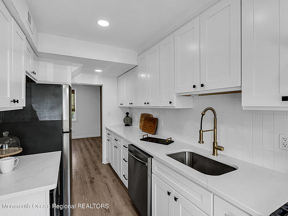 Completely updated beautiful 2BR, 1 Bath located in Shrewsbury, minutes to Red Bank! Modern Eat in Kitchen design with sleek finishes, gold accents and a chic stove backsplash featuring brand new S/S Appliances, Quartz Countertops, a Wine Fridge, Coffee Station/Bar Area! Kings cottage oak large planked waterproof & pet resistant flooring throughout the home! Living Room with patterned accented wall finish & recessed lighting! Gorgeous bathroom featuring seamless shower doors, black hardware and fixtures! Bedrooms have flush mounted caged ceiling fans with lighting! Brand new Washer & Dryer on 2nd floor! The spacious fenced in Backyard is an open palette for you to use your imagination and put your touches in! So close to Town, Shopping, Restaurants, & the Train to NYC (H&B 5/25 5pm)