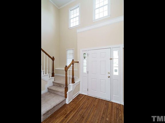 Downstairs Master with 4 bedrooms or 3 bedrooms with a massive BONUS ROOM. Open Floor Plan on a HUGE CUL DE SAC LOT, .61 ACRES wooded lot, with a sitting porch and deck to view nature behind. PRIME Cary location, close to shops, restaurants, I40, and more. LVP FLOORING throughout 1st floor with hardwoods in the foyer. Vaulted family room with skylights for extra light. Separate dining room and large breakfast area make great entertaining space. Plenty of space inside & outside. No HOA Fees.