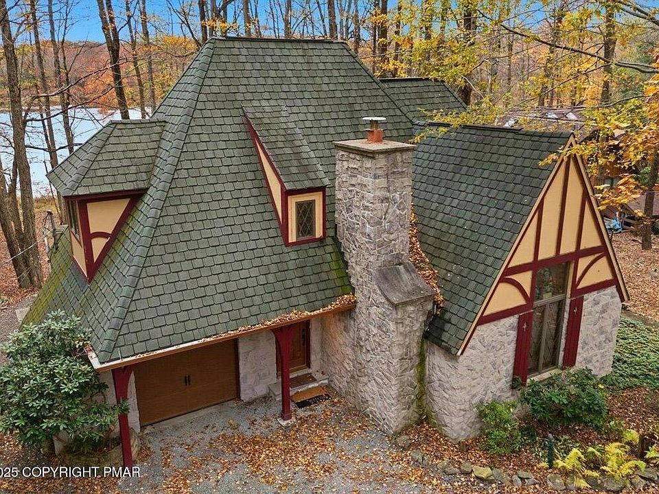 Lakeview Charming Tudor Style Home in the welcoming Lake in the Clouds community in the heart of the Poconos. Perfect Weekend Retreat or Year-Round home with a Peaceful and Serene Setting. This Custom-Built & Lovingly maintained home has 2 spacious bedrooms, with one flex room, 2 full baths, Open Concept Living with Soaring TIMBER frame beams in the Living Room with a Massive Stone Fireplace with stove insert. FIRST FLOOR bedroom with a Lakeview. Relax on the large covered deck or enjoy the amenities that this thriving lake community has to offer: 3 LAKES FOR FISHING. Rowboat or Electric Power Boating, Beach, Pavilion, Clubhouse, Volleyball, Playground, Tennis Courts & Path to Lookout Point with a VIEW! Quiet with no Short-Term Rentals.