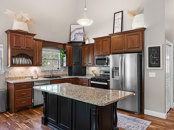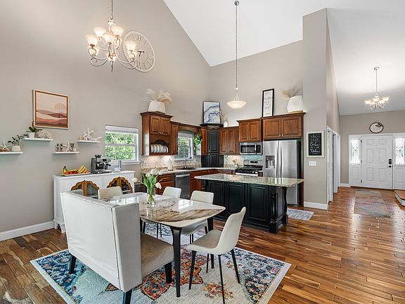 The home showcases stunning modern country architecture, featuring vaulted ceilings and an open-concept design that will impress even the most discerning homeowner. The kitchen boasts beautiful cabinetry, stainless steel appliances, and hardwood flooring, all thoughtfully designed for both style and functionality.