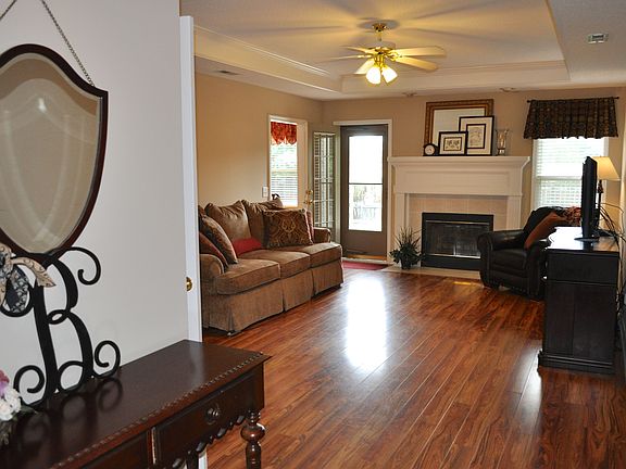 Fantastic 4 bedroom 2 bath Rancher! 3/4 Brick, Great Room has hardwood flooring, trey ceiling, and gas log fireplace. Glamour bath boast new his & hers vanities, LVP flooring, toilet, and shower door. Kitchen features new tile back splash, large eat in area, ample pantry closet. All appliances are less than 5 yrs old, refrigerator conveys. Home features New Vinyl Siding, garage door opener, and HVAC new in 2019. All windows replaced 5 yrs ago. Home has a security system in place. The backyard is spacious and includes a patio and shop with power.