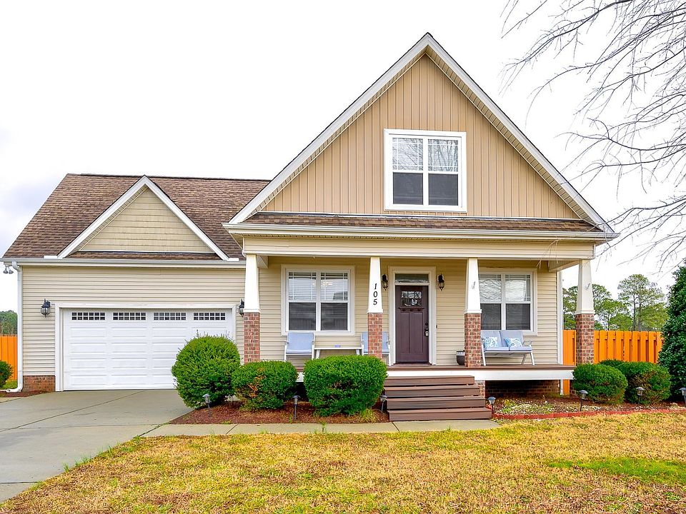 Spacious 3 bd 2.5 ba home with a large flex/bonus room! 1ST FLOOR OWNER'S SUITE with garden tub & walk in closet!!! Lovely hardwood floors in common areas. Ceramic tile flooring, granite countertops, bedroom and 2nd floor carpet replaced in 2022, fireplace in living room. You will love relaxing on the covered front porch and side patio off of the family room. Fence is freshly painted. Only 1.5 miles to Campbell University. Previously subject to lease, but renter had to cancel, so it is now back on market and vacant. Don't miss out! Measurements coming soon.