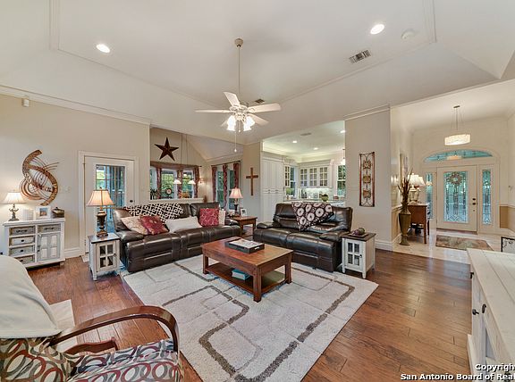 Its so hard to find peace, quiet and seclusion yet so close to town. Hurry to this great One story house + horse/acreage property only 3 miles from Boerne, 2 miles to IH10! Open, enchanting home with so much to offer. 4/3 + detached guest cottage+ RV hookups. Huge deck overlooking rolling hills, wet weather creek, RIDEABLE horse property with a fabulous shaded loop trail to practice on site. No City Tax! Huge attic space. Views, privacy, breezes. Welcome to your 'slice of Texas'!