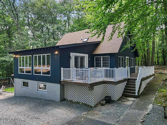 ADORABLE LAKE HOME w/ 4-bedrooms and 2 bathrooms, now available. This home feels like you're at the lake, the second you walk through the door. Home has been nicely remodeled AND the furniture is negotiable. Excellent location, close to Lake Wallenpaupack, skiing, Wallenpaupack schools and many major roads for the commuter. This home offers many upgrades, including a new roof and plenty of space for your entire family. Living room has a beautiful wood burning fireplace for those cold winter nights. Home boasts a very large family room/sunroom with many windows and access to ample decking. New paint on interior and exterior. The inside feels very, ''light and bright.'' Enjoy this very peaceful setting through all 4 seasons. PERFECT year-round residence or weekend get a way.