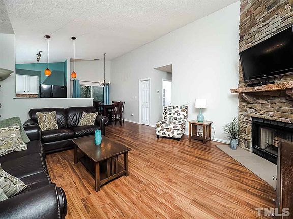 Affordable living in Apex doesn't come any cuter than this! Engineered hardwood floors, fresh paint, tall ceilings, relaxing patio, huge fenced yard with lots of shade, and outdoor storage closet. Did you see that floor to ceiling stone fireplace? Stunning. The location couldn't be better -- just minutes from Apex shopping & dining + very easy access to Hwy 64, 540, and Hwy 55.