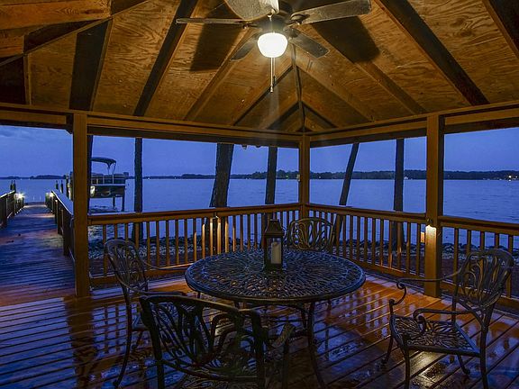 This all-brick beauty in the gated community of Harbour Watch on Lake Murray has 3-car gar, 12 ceilings on main, 9 ceilings lower, crown molding throughout, ceiling fans in all BRs, LRs, covered porches, & gazebo, HWD floors throughout living areas, carpet in BRs, & tile in laundry & BAs, gutters w/guards, central vac, speakers in every rm & outside, 2 Rinnai tankless H2O heaters, 2 air purifying systems, 3 HVAC units, termite bond, beautifully landscaped yard w/lighting, priv dock w/lg gazebo, jet ski docks, & boat lift. Formal DR has raised panel chair rail & wainscoting, palladium window & cathedral ceiling w/uplighting & butlers pantry. Lg Kit has granite counters, subway tile backsplash, island & bar, desk, dbl ovens, built-in micro, pantry, & over-sized SS fridge. Bfast area is lg & has bay window. LR has gas log FP, built-ins, palladium window, vaulted ceiling & 16 ft French sliders that open to expansive deck w/black railing. Owners suite has H/H WI closets, office/library, BA w/whlpl tub, dbl vanity w/tower cab & sep shower. MBR has bay window w/sitting area & door that leads to deck. 2nd MBR has H/H closets & priv BA w/tub-shower. Downstairs, theres a 2nd Kit w/granite counters, bar, fridge & ice maker, an exquisite wine cellar, 3 BRs & 4 BAs, LR w/built-in book cases & gas log FP. Pool table conveys. Fr sliders open to covered patio. There is a lg boat gar & storage area which can be accessed by golf cart. This one-owner home is immaculate & move-in ready.