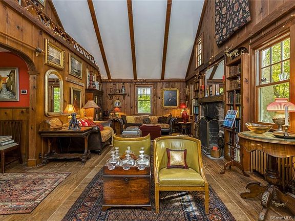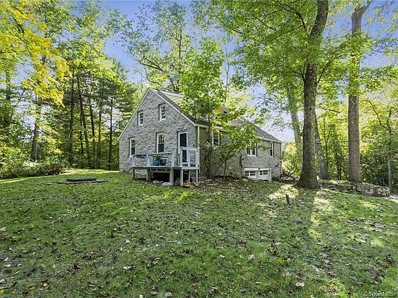 Charming stone colonial cape to add your own touches. Lowest price home in North Stamford. Wonderful living room with vaulted ceilings, beam and fireplace open to the formal dining room. Great space for family gatherings and entertaining. Master bedroom on the main level with hardwood floors . There is a second bedroom and hall bath as well. The kitchen has a stainless steel refrigerator, range, dishwasher and some granite counter tops as well as new windows on the first floor. There is another bedroom, bath and sitting room on the second floor. The storage room and big closet on the second floor are great for extra storage. The balcony looks down on the living room. There is a two car garage, laundry and some basement storage. Nice private property with room to expand the house and level yard as well as views of the pond in the distance. Don't miss this opportunity to customize your home.