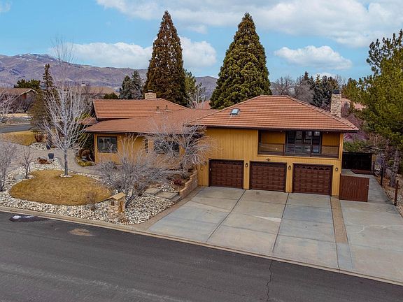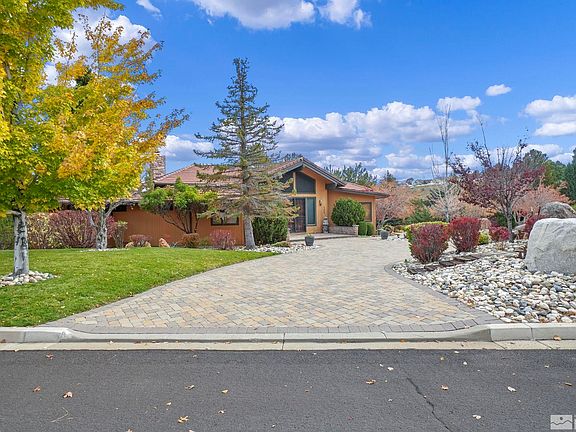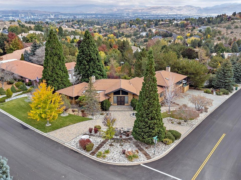 Large Non-HOA corner lot property is located in very desirable neighborhood of Southwest Reno. It features exquisite landscaping, spacious rooms, great room style with high ceilings and large windows framing city and mountain views. The home has amazing flow ideal for entertaining or cozying up to one of the 2 fireplaces. The large deck and private backyard provides great indoor/outdoor living options. And the 3 car garage plus RV parking on the side provides great parking for all your toys or workshop., The property has 4 bedrooms, 3.5 bathrooms, and a bonus walkout basement. The bonus room has a full bath attached to it making it a very versatile space for entertaining or even potentially as a large room suite for a family member. The primary bedroom has a wonderful private setting by being upstairs, has zoned heating and it's own fireplace. This provides for a great getaway when needed as well as access straight out to deck and hot tub.