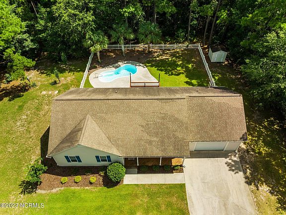 Well maintained 3 bedroom, 2 bath home in the desirable Silver Creek Planation community. This home offers many updates and is ready for you to enjoy the rest of your summer. In the last 2.5 years, the home was updated with all new LVP, new kitchen cabinets, stainless appliances, upgraded granite, new paint throughout, and new lighting fixtures. The master bedroom is plenty large and will easily accommodate a king sized bed if desired. The garage is oversized and includes an exterior door to the backyard. The backyard is your own private oasis, complete with palms trees, a white vinyl fence and an inground pool. For additional storage, there is a separate vinyl sided shed. You will love all this community has to offer - a boat ramp to the White Oak River as well as a separate day dock fantastic for fishing. This home sits on just over 3/4s of an acre, and offers plenty of tree lined privacy. All this and more.... in the White Oak/Broad Creek/Croatan school district.... a 10 minute drive to Emerald Isle beaches.