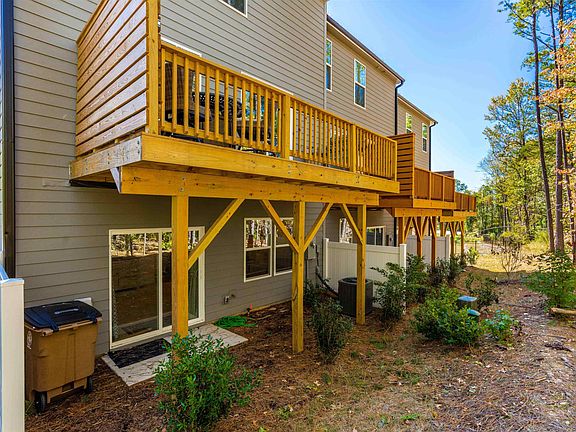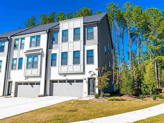 This modern end unit luxury 2-car garage townhome is vacant and move-in ready. Located in a prime Cary location with close proximity to White Oak Creek Greenway & Park and only minutes to shopping and dining venues. This Renata plan is 4 bedrooms, 3.5 baths, with painted brick exterior, oversized black framed windows and oak stairs throughout. First floor bedroom with full bath and patio is great for guests. Main level is open and spacious with LVP flooring throughout, 10’long kitchen island, gray cabinets, granite countertops, stainless steel appliances, and 17' deck perfect for entertaining. Third level has 2 additional bedrooms and a spacious owner’s retreat with en-suite bath and 2 walk-in closets. Refrigerator, washer/dryer included.