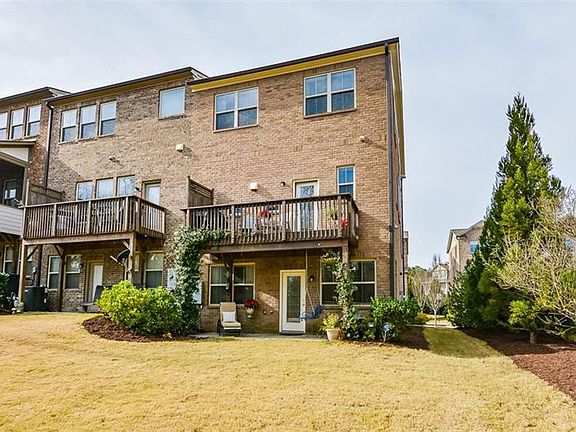 Stunning END UNIT townhome just 1 mile from downtown Alpharetta. Large backyard space. Beautiful hardwood floors. Spacious fireside family room open to dining space with coffered ceiling. Stunning kitchen features white cabinets, spacious island with breakfast bar, Beautiful granite countertops, full tile back splash with windows inset, gas cook top and stainless steel appliances. Charming deck off kitchen perfect for grilling or just chilling. Upstairs offers master suite with trey ceiling & spacious master bath. Two additional spacious upstairs bedroom with large closets. Perfect terrace level retreat with rec room and bedroom can be used as a junior master suite or office. The door off the rec room leads to a charming outside patio overlooking a large landscaped backyard. Fabulous location. 2.5 miles to Wills Park, 3.2 miles to the Avalon, 1 mile to all the shops, restaurants, farmers market in downtown Alpharetta. 10 minutes to the Big Creek Greenway walking and biking network. Quick access to Ga 400. Don't miss prime location and charming home.