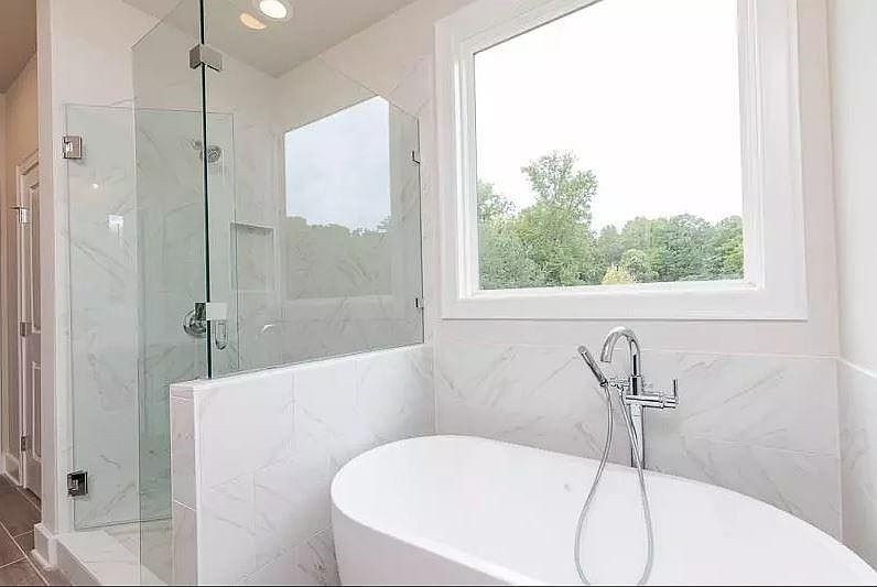 The Chaucer Home Design features 4 Bed / 3.5 Bath ~ END UNIT + DESIGNER CURATED FINISHES ~ Towns on Thompson- a boutique community of 48 townhomes combining luxury living with exclusive locality. Ideally situated on Thompson Street separating Downtown Alpharetta from Avalon, the possibilities are endless in the heart of vibrant Alpharetta! This beautiful home design sits over 25 ft wide with 3 stunning 8 ft arched windows on your main level, truly making this space feel abundantly bright, spacious, and open! Enjoy Hardwoods Throughout the home, 10 ft ceilings + oversized, split staircases featuring open railing providing views to your front door Foyer (perfect for statement foyer chandelier) & Custom Trim Wall installed vertically from the Foyer to the 3rd floor. Kitchen is mindfully situated in the rear of home overlooking HOA Maintained backyard & pocket park. Home Site 18 features stacked white cabinets to the ceiling, driftwood island with Cambria Quartz Countertops, Farmhouse Sink, and Custom Pantry Shelving. Dinner Party prep made easy with GE Café Appliances including a gorgeous 36” Commercial Range w/ Gas Oven + Modern Designer Hood Vent + Café Dishwasher + plus an additional Café Double Wall Oven with Convention. Enjoy Covered Deck directly off kitchen with private views complete with ceiling fan. Dining Space Separates kitchen from your living room featuring a Fireplace with vertical shiplap surround & Box Beam Mantel! TV Bracing, Smart Tubes, Media Outlets, and Wireless Access Points have been installed for easy setup. Upper-Level features oversized owner’s suite including Custom Trim Wall, 3 oversized windows, and spacious walk-in closet with Custom Built-In’s. Owner Bath includes white cabinetry with Cambria Quartz Countertops, Spa Shower with frameless glass door & tile surround + elegant Free-Standing Tub. Guest Bedroom 2 & 3 located opposite of Owner’s Wing with additional Full Bathroom. 4th Bedroom is located on Terrace Level featuring a separate entrance through your fenced in backyard + Covered Patio. Oversized 4th Bedroom includes a walk in closet and Full Bathroom with upgraded walk-in shower. Our Front entry townhomes allow for homeowners to park 2 cars comfortably in the garage while still having a parking pad big enough for 2 additional cars. ESTIMATED COMPLETION: January / February 2023. ~HOA: Dues include Professional Community Management. Landscaping. Comprehensive Building & Structural Insurance. Say Goodbye to roof maintenance, gutter cleaning, painting/staining, & landscaping! Let HOA cover repair & retreat of termite bond, weekly trash & recycling and so much more! *Homeowners have the optional right to join swim amenities at the Foundry* [The Chaucer]