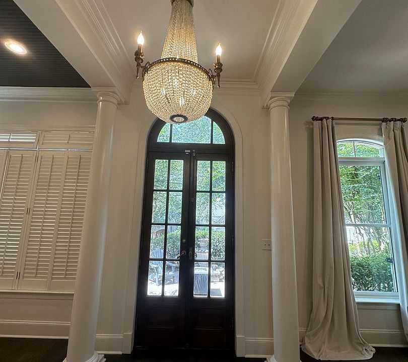 This picture perfect home sits on a private no-outlet cul-de-sac surrounded by the character of Olde Towne. The home features a study with bead board ceiling, formal living room, formal dining room and family room. There is solid oak custom flooring, antique front doors, 11' antique cypress interior doors from New Orleans, plantation shutters, 12' ceilings, surround sound and two fireplaces with custom mantles. The kitchen has quartz countertops, center island and stainless-steel appliances. It opens onto the family room that has a wet bar and a grand staircase with a handmade Italian iron banister.