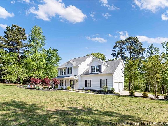 Country type living of your choice. 3BR, 2.5 Bath, two story home sits surrounded by trees on two side and on 0.6 acre lot with water feature in the front and child's play set in the backyard. Home boast beautiful formal dining room with window to gaze out and watch the wild animals in the forest and kids play in the backyard. On the front covered porch listen to your water fall as you relax from a hard day. Outside of home was pressure washed March 2023. Interior of home and garage recently mostly all new paint throughout as well as all new carpet, many new light fixtures, tile backsplash in kitchen and much Love in labor to prepare this home for you. Just North of Spring Lake and quick access to Sanford.