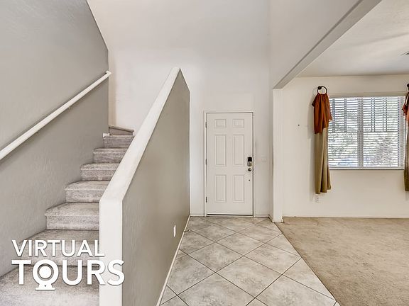 Beautiful turnkey home with 4 bedrooms, 3 bath and 2,289 square feet situated on a large corner lot in a lovely neighborhood in North Las Vegas! This property offers great open layout, abundant natural light, updated chef's kitchen, spacious bedrooms all with walk-in closets and great outdoor space for entertaining. Main floor features marble tile flooring throughout, white painted walls, plenty of windows for gorgeous natural light, carpeted formal living room just off the entry (can also be altered as an office) and lots of entertaining space in the living and dining areas plus sliding glass door access to the rear yard. Remodeled kitchen showcases black wood cabinets, recessed lights, granite countertops, stainless steel appliances, pantry and an eat-in center island with deep double sink. Rounding off the first floor is a full hallway bath with shower/tub combo and a nicely sized bedroom with ceiling fan and carpet flooring. The remaining three bedrooms are located upstairs, spacious and well-appointed with carpet flooring, ceiling fans and large walk-in closets. Relaxing primary en suite has white marble tile floors, dual vanity, glass enclosed standing shower and a separate soaking tub. Shared hallway bath also has white marble floors, dual vanity and a shower/tub combo. Central A/C. Attached 2-car garage. Separate laundry room. Low maintenance, private backyard is expansive and offers a covered patio, hot tub, pavers, gravel, mature vegetation and tons of opportunities to add your personal touches. The ideal starter home in a desirable, quiet neighborhood. Don't miss out!