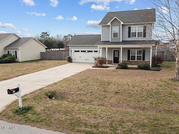 Welcome to your new home nestled in the charming community of Richlands, NC! This delightful residence features 3 bedrooms, 2.5 bathrooms, and an array of desirable features, making it the perfect place to call home. Upon arrival, you'll be greeted by a well-manicured lawn and a welcoming front porch, offering the ideal spot to enjoy your morning coffee or greet guests. Step inside, where you'll discover a spacious and inviting living area, bathed in natural light, offering a cozy retreat, ideal for relaxing evenings spent curled up with a good book or enjoying movie nights. The heart of the home lies in thecozy kitchen with a passthrough to the living room so you can interact with your guests while you cook! This kitchen is complete with sleek, modern appliances, ample cabinetry, and a convenient breakfast nook. Whether you're whipping up a tasty meal or hosting gatherings with loved ones, this kitchen makes it easy. Adjacent to the kitchen, the dining area provides a perfect space for family meals and entertaining, with easy access to the outdoor patio for nights you're cooking on the grill. Upstairs, you'll find a serene escape in the spacious master suite, featuring an ensuite bathroom and a large walk-in closet. Two additional bedrooms offer comfort and versatility, perfect for accommodating family members, guests, or creating a home office or hobby space to suit your needs.