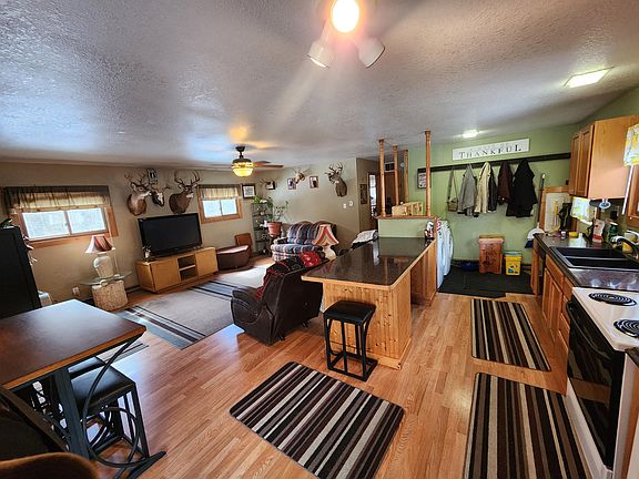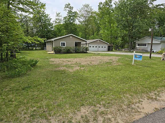 This charming residence features three bedrooms, two bathrooms, a cozy covered porch, and a spacious 24x44 heated garage with additional amenities such as a garden shed and woodshed. The house offers both electric baseboard and forced air heating systems. The garage, previously utilized for car painting, includes ventilation and conveniences like a bathroom with a shower and an office space. Nestled between Higgins and Houghton Lake, this property is just minutes away from state parks and scenic trails.