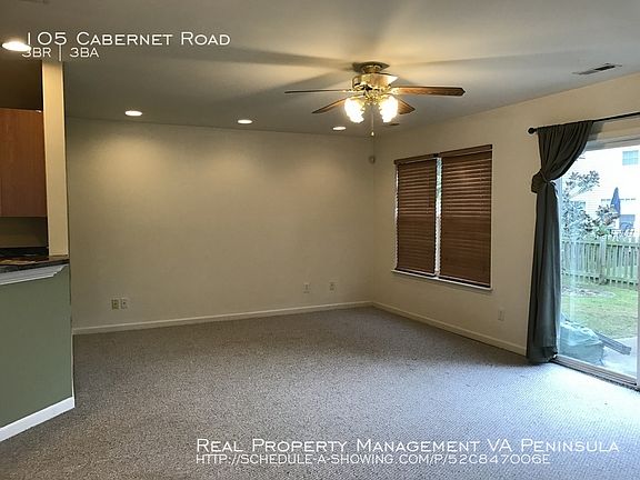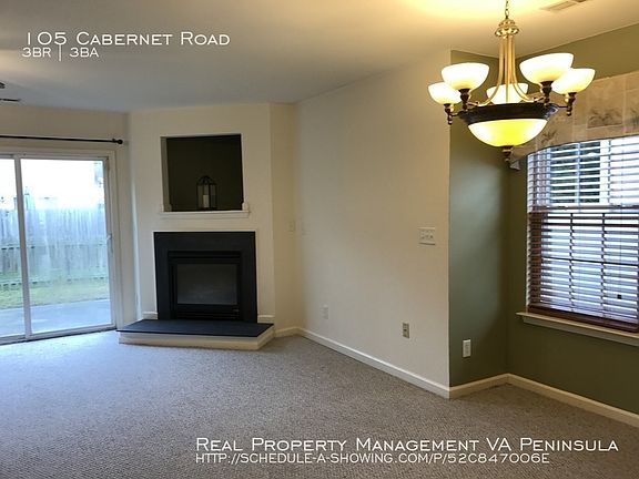 SCHEDULE A SHOWING ONLINE AT: showmojo.com/lh/52c847006e Lovely Home In York County With A Williamsburg Address. 3 Bedrooms. 2.5 Baths. 1720 SqFt. Foyer.Open floor plan. Living area with fireplace and Dining Area. Kitchen with gas stove. Full kitchen appliance package. Cathedral ceiling in Master Bedroom with fireplace and walk-in closet. Master bath with jetted tub. Laundry closet. Fenced backyard. 1 Car attached garage. Convenient location. Near shopping, Colonial Williamsburg, Water County, Busch Garden, and I-64.