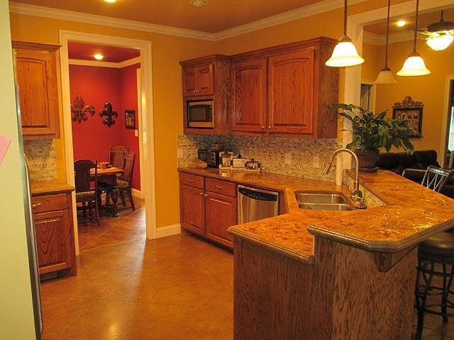 Acadian style 4 bedroom 2 1/2 bath home with high ceilings, stained cabinets, solid granite countertops, tankless hot water heater, man made shower and a 40 x 40 metal shop.