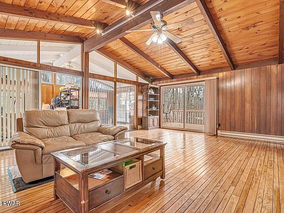 Traditional Hemlock Farms View house, offering 2.4 Acres of seclusion, this country retreat is nestled in nature. The wrap around deck offers a serene escape.The large living area with real stone fireplace and sun room is great for entertaining, This home is a walk to Family Fun Park. The community of Hemlock Farms offers a gated entrance and fire and rescue, security and clubhouse with activities for all, an indoor pool, houses of worship and childrens playgrounds, beaches and hiking trails. Make this your next move!