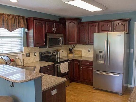 Vaulted ceilings, granite counter tops, carpet only 1 year old! Deck overlooking fully fenced backyard, backs up to trees, fabulous master bath fully updated with new vanities, mirrors and tile, newer furnace and AC 2012.
