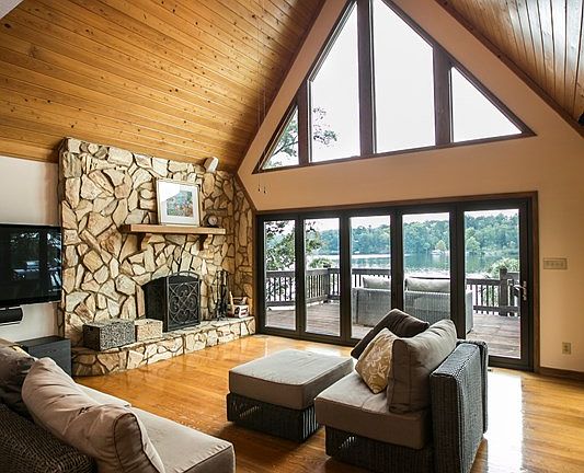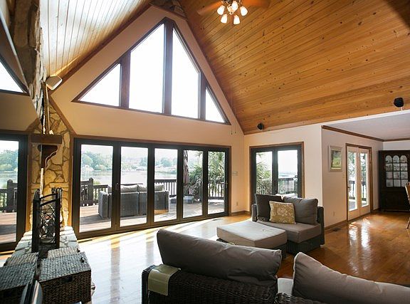 YEAR ROUND RUSTIC RETREAT: FREE TO JUST BE...in this UNRESTRICTED PARADISE! Almost two acres, three garage bays set up for the finest toys,a lit seawall and fantastic water. Bring the whole family and just enjoy living! A retractable wall folds back to connect spectacular big water and sunset views - to a vaulted great room with rock fireplace. Lush Palm Trees give you privacy and the feeling you are living in a resort. Lake breezes gently sweep into your home. It's simply Lake Living at its best - anywhere! The kitchen is open to the great with a large dining area lakeside. New Quartz countertops have just been installed, along with new stainless steel appliances. A very large master suite is on main with everything you could want, including a vault. Vaulted Cypress ceilings soar over the great room with its magnificent view. New carpet has been installed in all of the bedrooms. The full daylight first floor is complete with it's own kitchen, dining area, den with fireplace, and large bedroom/bathroom combination. This home was literally designed for parents to share a gorgeous space of their own. Patios feature beautiful rock work. The deck lumber all by itself was $38,000. It's Brazilian Hardwood, and gorgeous. Cedar siding graces a large covered porch area where you can snooze in a hammock, or rock away. Lights line the shore, and there are steps for gentle entry to your big water. The garage.....well, six cars are easily accommodated. If you have toys that you prize, they have a protected home here as well. This home is so wonderfully well made all over. It's built 12 on center with every detail well thought out. Yes...high speed internet is available here! This area has been identified as a growth area by The Greenwood Master Plan. Fantastic investment opportunity for either high end rental income OR just a prime piece of property to enjoy and sell later. This home is large enough to accommodate massive family gatherings, or two families who want to share gorgeous waterfront property. This is truly a casually elegant retreat - perfect for summer with the palm trees, or fall and winter with fires roaring. You have to see this one in person to truly appreciate all it has to offer.
